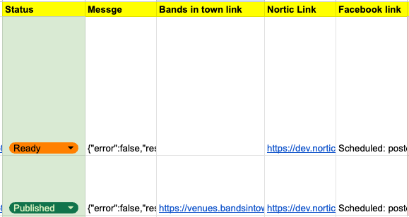 To Publish an event they in col S select the Col value as Ready then press publish all ready rows. This is where we get the output.