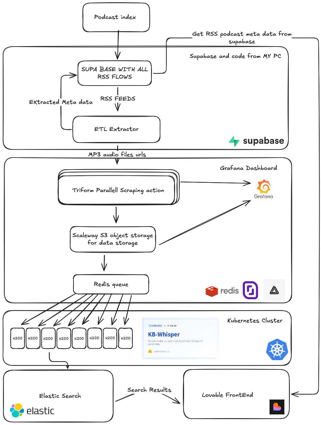 In this post, I go over the week journey end-to-end (mostly free time and over the weekend), starting from low infrastructure or any experience around building a podcast search engine. Some highlights: